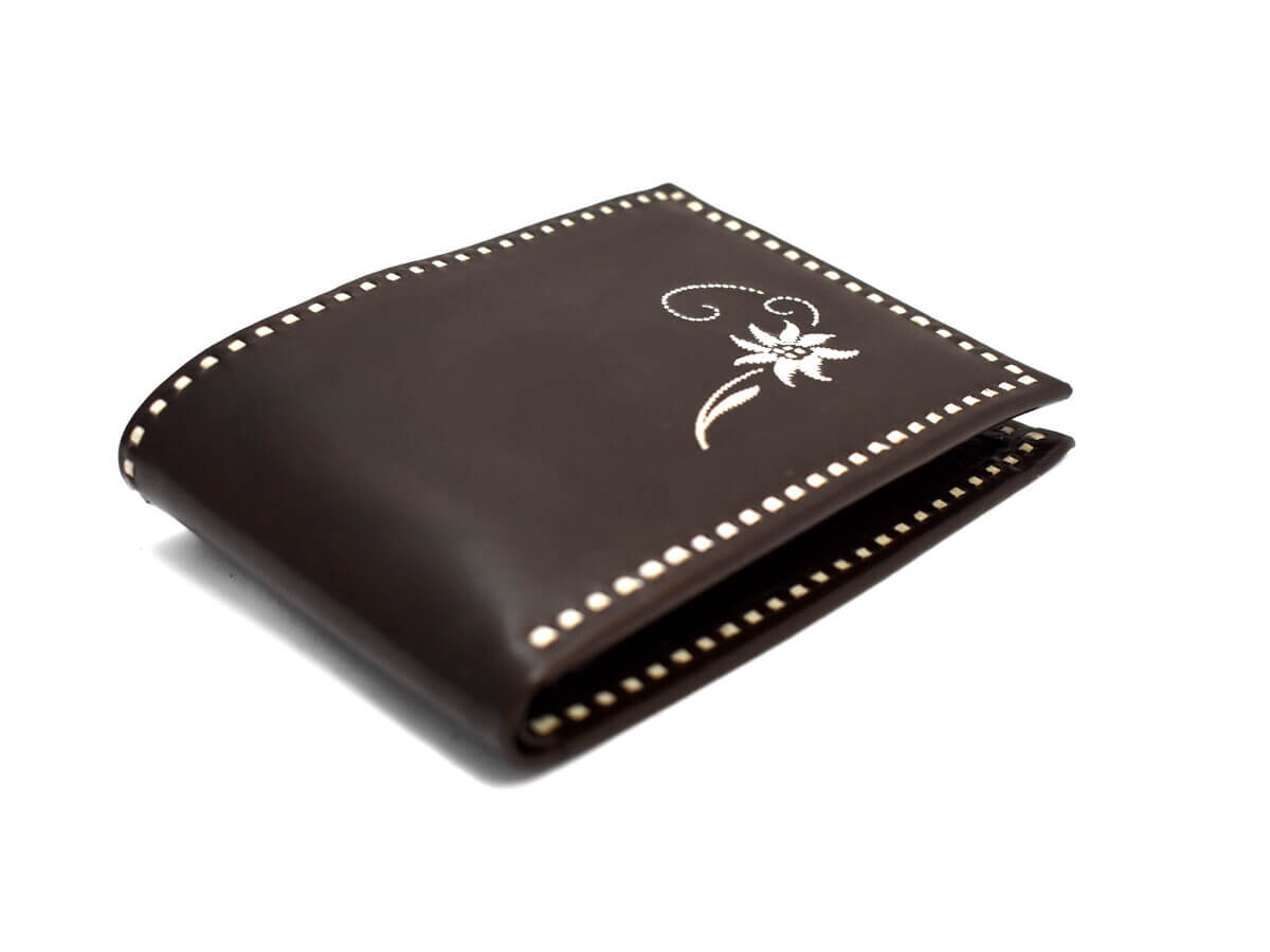 Die Produktionsdauer einer bestickten Brieftasche beträgt ca. 3 Wochen. Eine kürzere Wartezeit ist bei Bedarf auch möglich, jedoch nach Absprache.