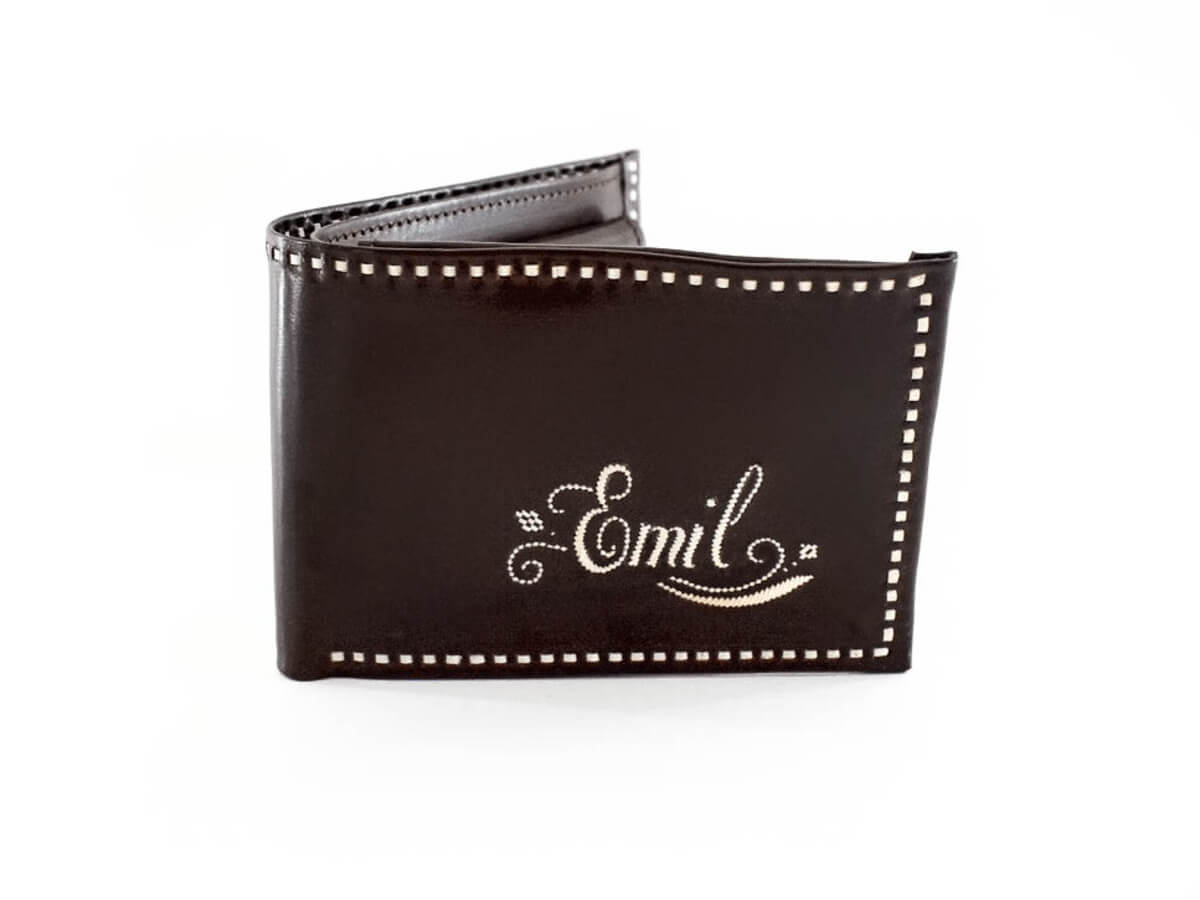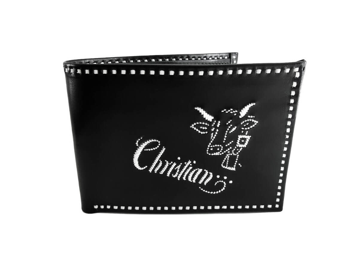 Die Stickerei auf dem Geldbeutel wird an dich angepasst!